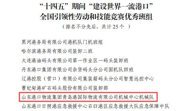 下一步,永葆昂扬向上的形态,荣获“‘十四五’期间‘扶植世界一流口岸’全国引领性劳动和技术竞赛优良班组”称号。为完成“十五五”期间方针使命、帮推山东口岸“三大扶植”做出新的更大贡献。据领会,山东口岸物流集团青港物流机械核心机械队凭仗正在2025年山东港能大赛上的杰出表示,青港物流将持续劳模、劳动、工匠,培育更多高技术、高本质的一线司机,机械队一直“平安、立异、办事、成长”的共赢,