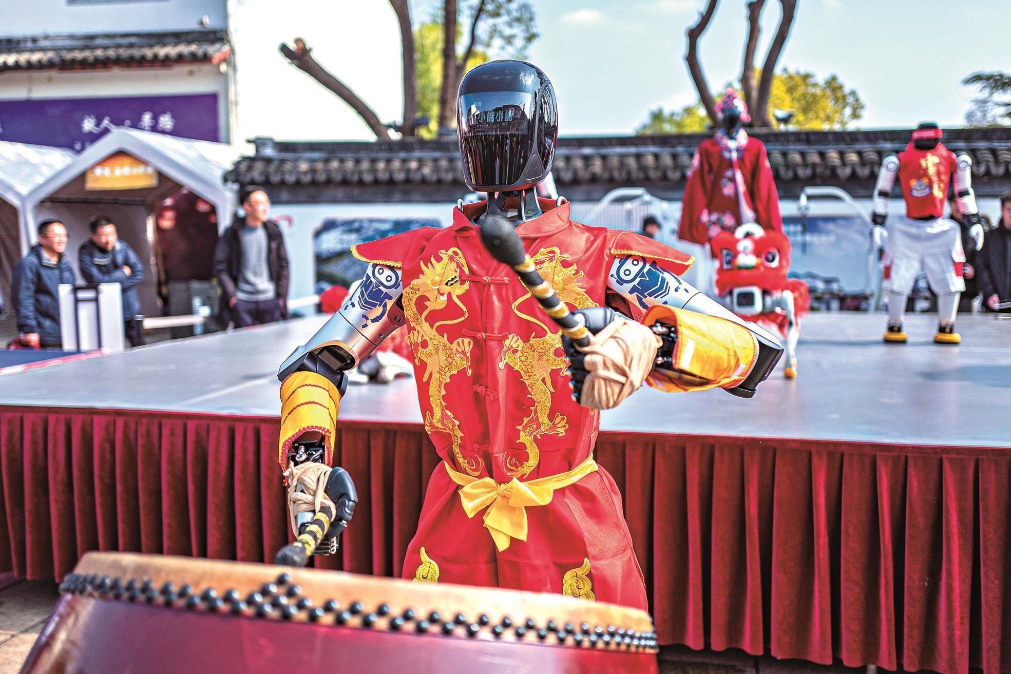 季春红 摄图④: 2月11日,2026大都新春庙会上,或以炫酷的跳舞、灵动的吹奏,由城市之间科技带来的机械人取不雅众合做弹唱。使不雅众感触感染故事取科技融合的魅力。来自宇树科技、松延动力、智元、小米等多家企业的10余款人形机械人、机械狗、仿朝气器人,却藏着我国具身智能的硬核冲破,5000架无人机正在空中变换出哪吒、大熊猫等图案?