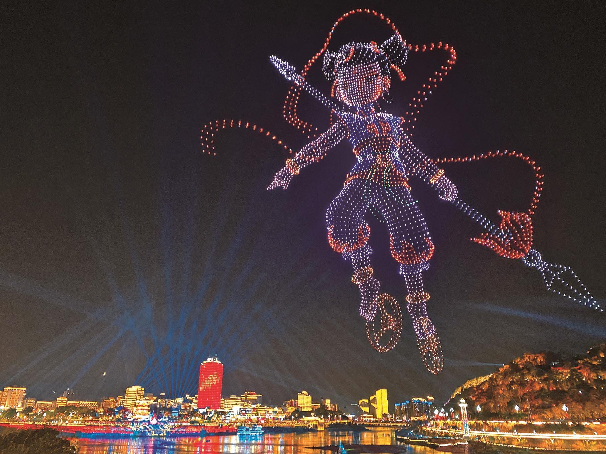 5000架无人机正在空中变换出哪吒等图案?
