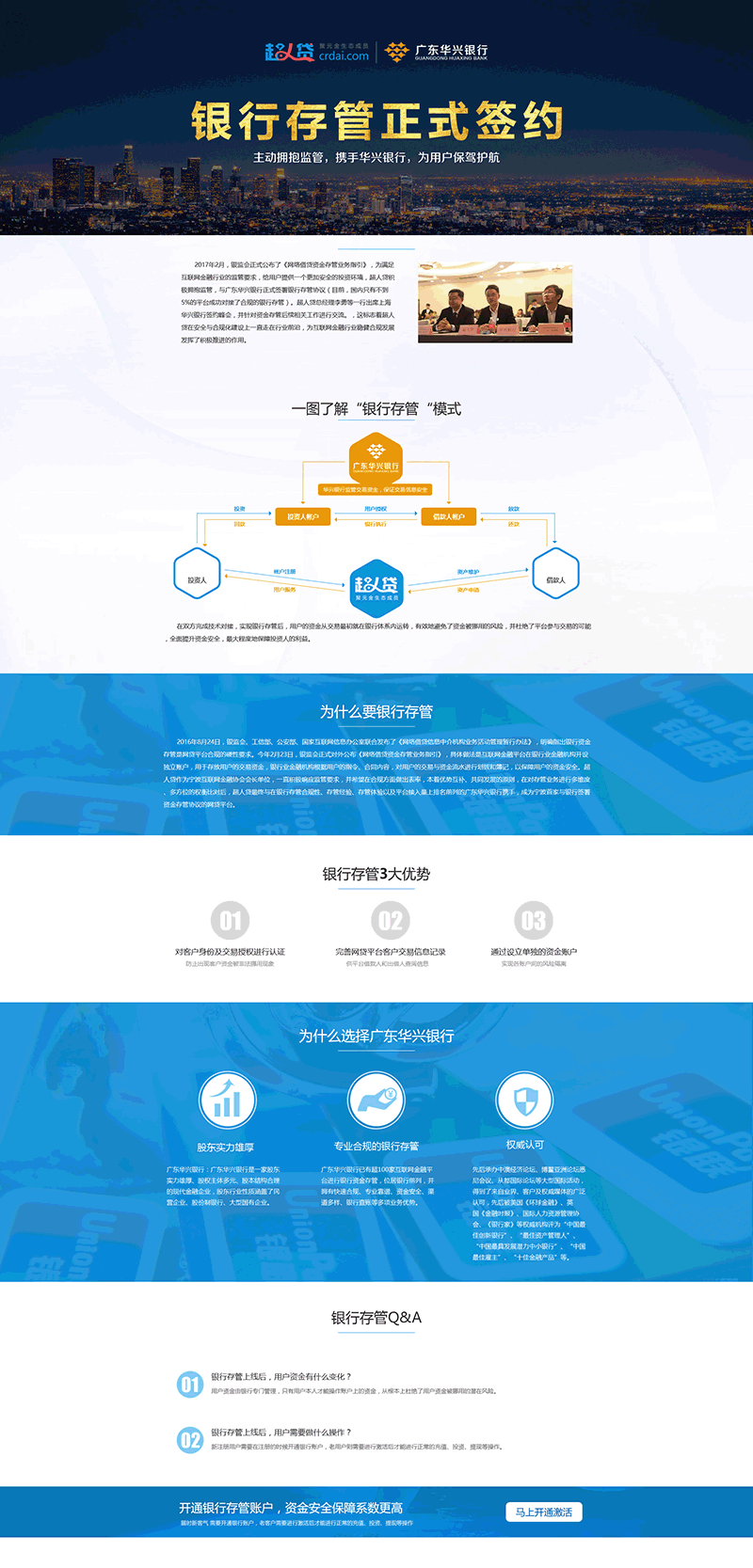 本年是互联网金融业的合规元年,而银行正在选择存管平台时也会分析考虑平台布景、产物风控机制、手艺对接能力等一系列前提,